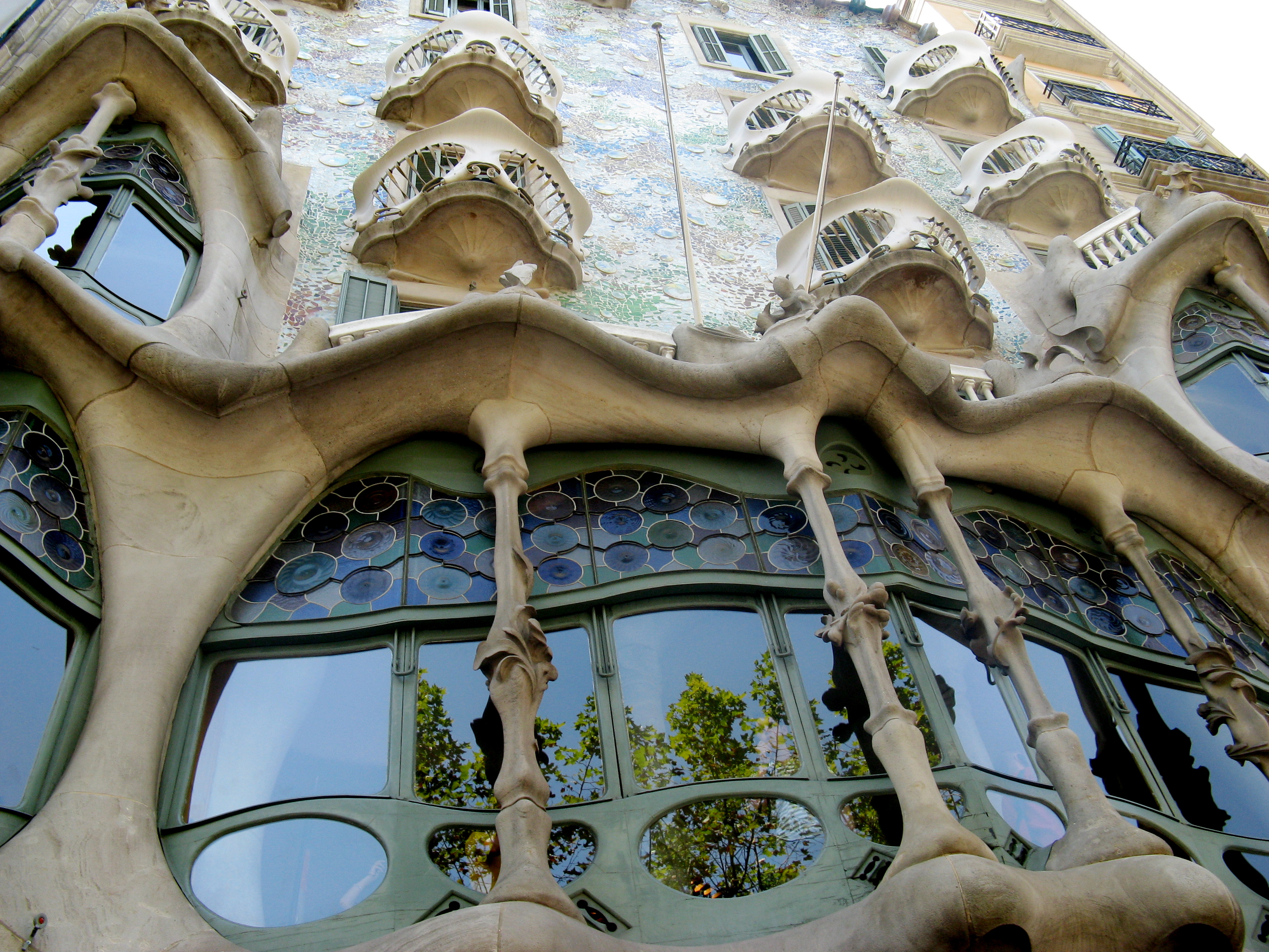 Casa Batlló – cross of San Jordi in scaly roof, bones framing windows of Casa Batlló main facade.