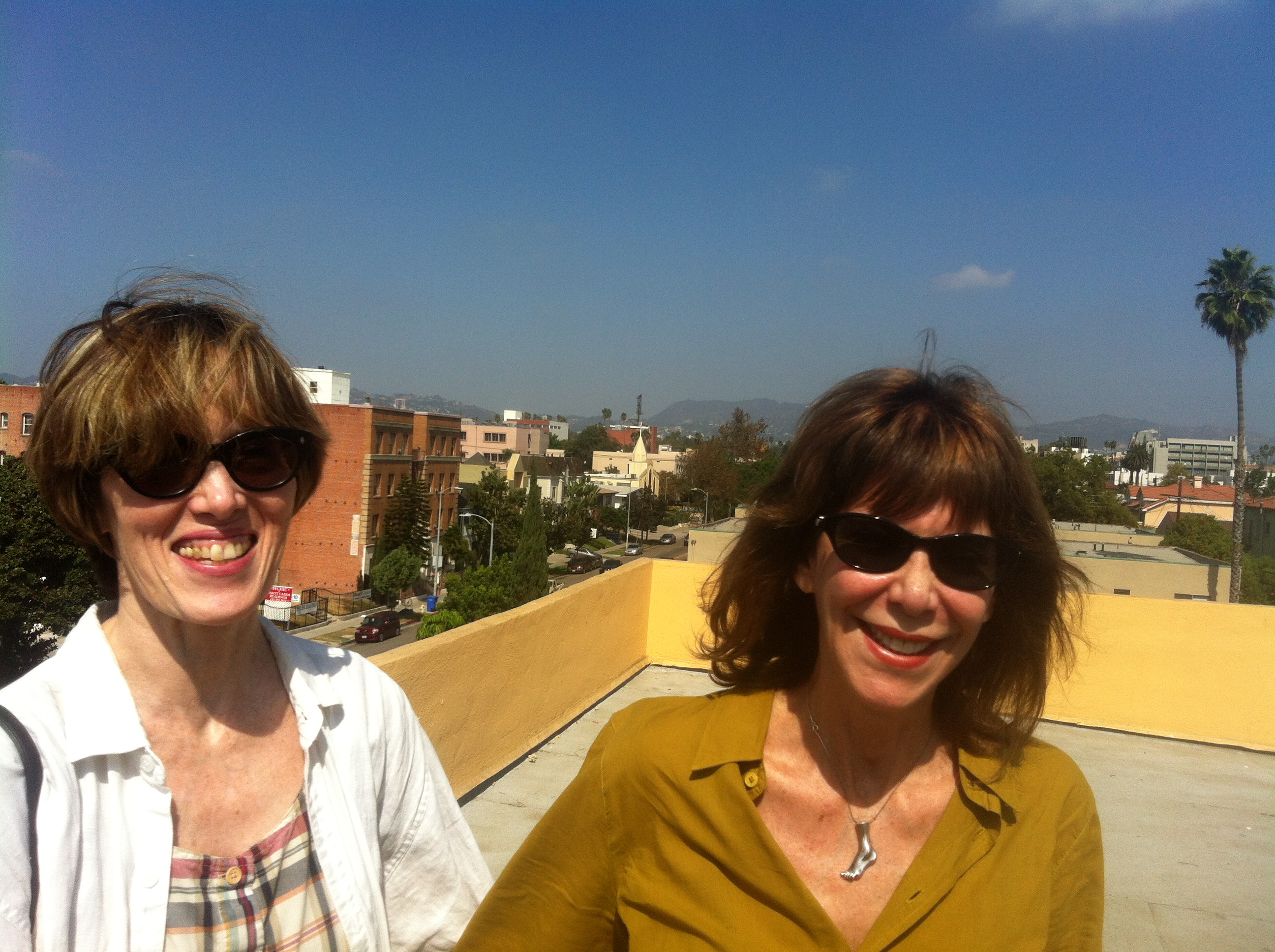 Before returning to Barcelona two of my oldest Hollywood girlfriends stop by to approve. The place is in shambles, so we go up to the roof where I shoot a snapshot of them: